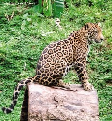 El jaguar es el mayor depredador en la América tropical y una especie silvestre que está en peligro de extinción. Se estima que en Costa Rica quedan menos de 500. Para los mayas, el jaguar era un símbolo de poder, vida, fertilidad y muerte. Posee una vista, oído y olfato excelentes; es fuerte, inteligente, hábil y el único felino capaz de rugir en el continente americano.