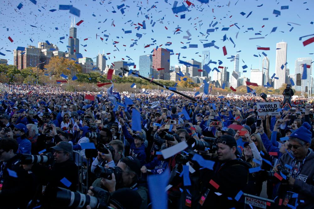 Los Cachorros y cinco millones de fanáticos, según cálculos oficiales, festejaron con un desfile desde Wrigley Field y un rali en el parque Grant, frente al lago Michigan, el primer título de Serie Mundial del equipo en 108 años.