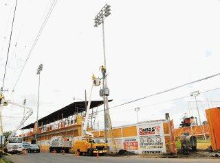 Puntarenas (Corresponsal). Los trabajos de la nueva iluminación del estadio Municipal Miguel Ángel Lito Pérez se encuentran en un 90% de avance.