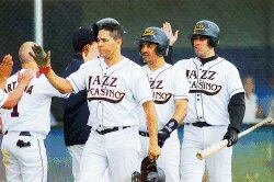 Jazz Casino venció a Playas del Coco 9-7 y 8-1 en el Parque Escarré, merced a la suma de 17 carreras y 26 hits, incluso dos jonrones de Alexánder Flores, uno de Duilio Sotelo y cuatro hits en nueve visitas de Silvio Guadamuz.