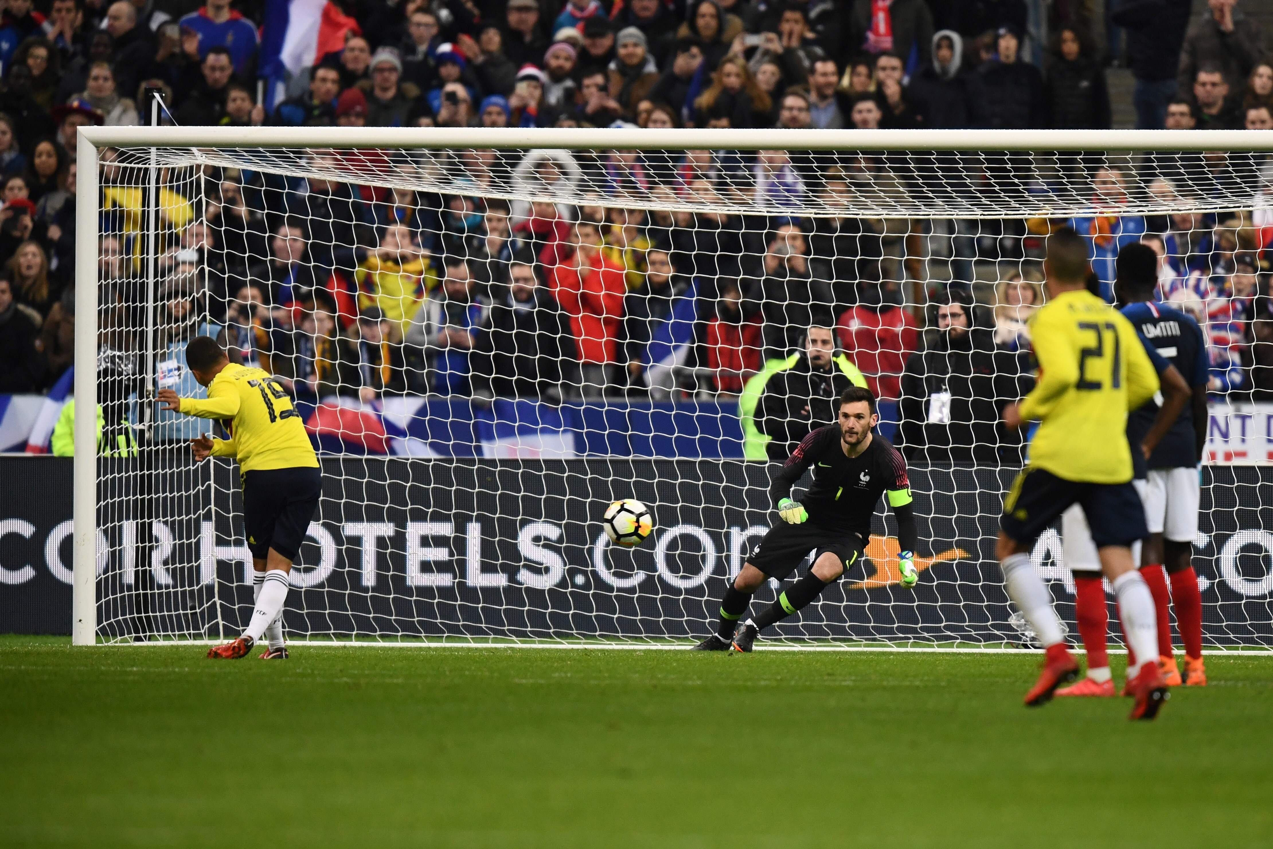 Un tanto de penal de Juan Fernando Quintero (85') dio el triunfo a los colombianos, después de que Olivier Giroud (minuto 11) y Thomas Lemar (26') adelantaran a los Bleus, y de que Luis Muriel (28') y Radamel Falcao (62') hubieran logrado devolver la igualdad al marcador.