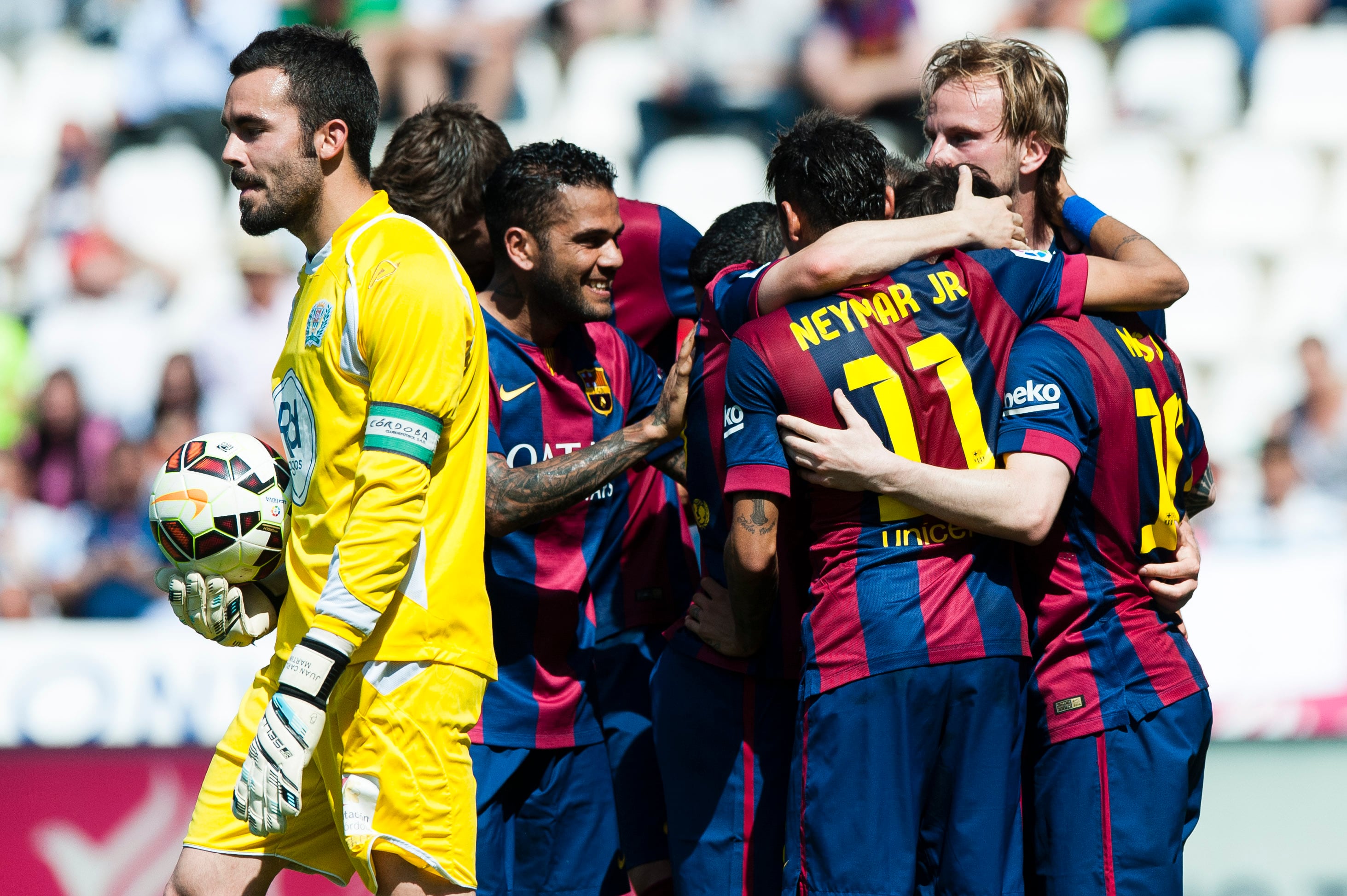 El Barcelona aseguró este sábado una jornada más el liderato de la Liga española con una estrepitosa goleada de 8-0 ante el colista Córdoba, en la fecha 35 de la Liga española.