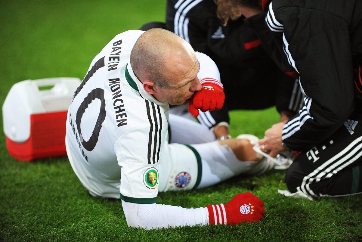 El holandés tuvo que ser retirado en camilla tras esta lesión, ocurrida durante el partido de la Copa Alemana que el Bayern ganó frente al Augsburgo (2-0), y en el que Robben abrió el marcador (su gol 13 de la temporada).