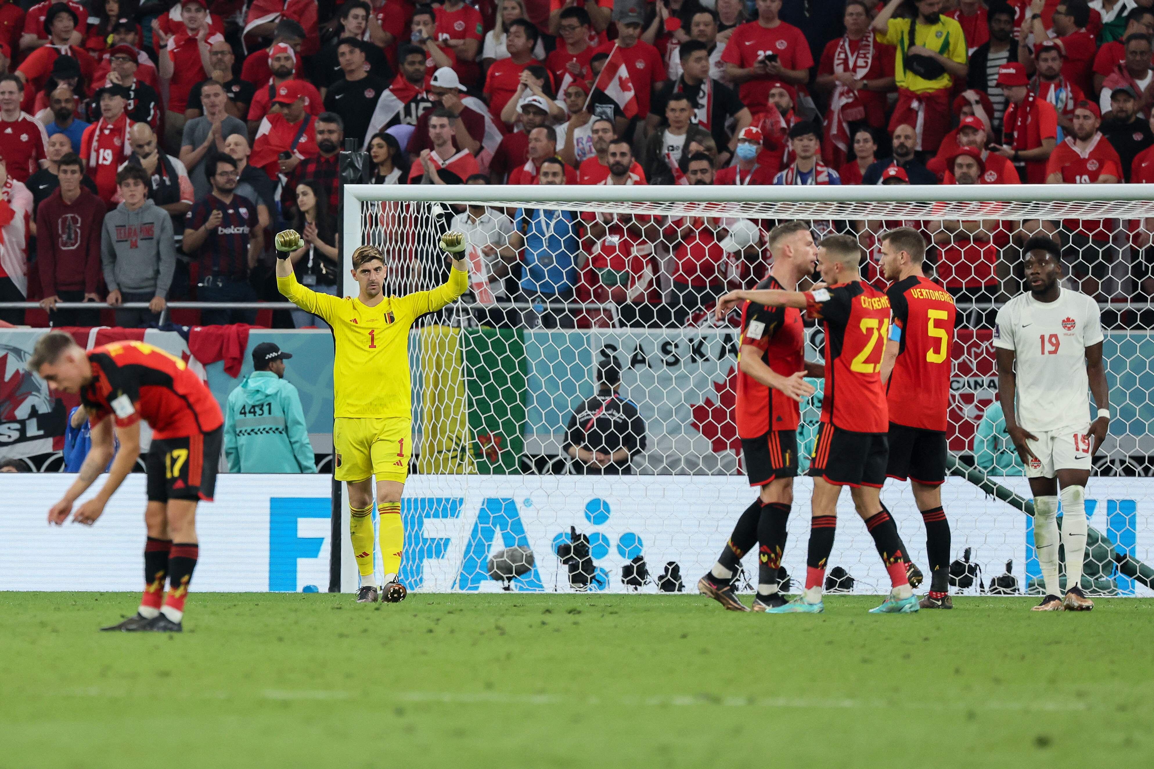 Courtois adivinó el lanzamiento de penal de Davies (11), pero Canadá no se desanimó y siguió intentándolo, asfixiando la construcción de juego de los belgas y con veloces contragolpes.