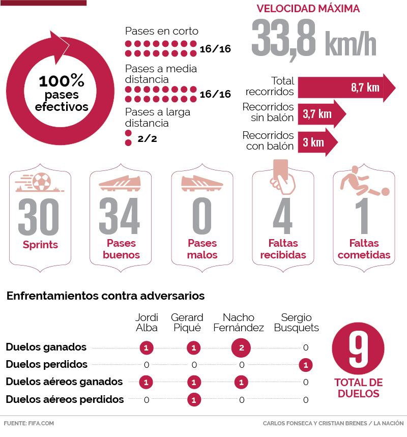 Para el segundo tiempo, Costa volvió a herir al rival. Fue al 55′ tras cerrar un centro de Sergio Busquets en el centro del área pequeña.
