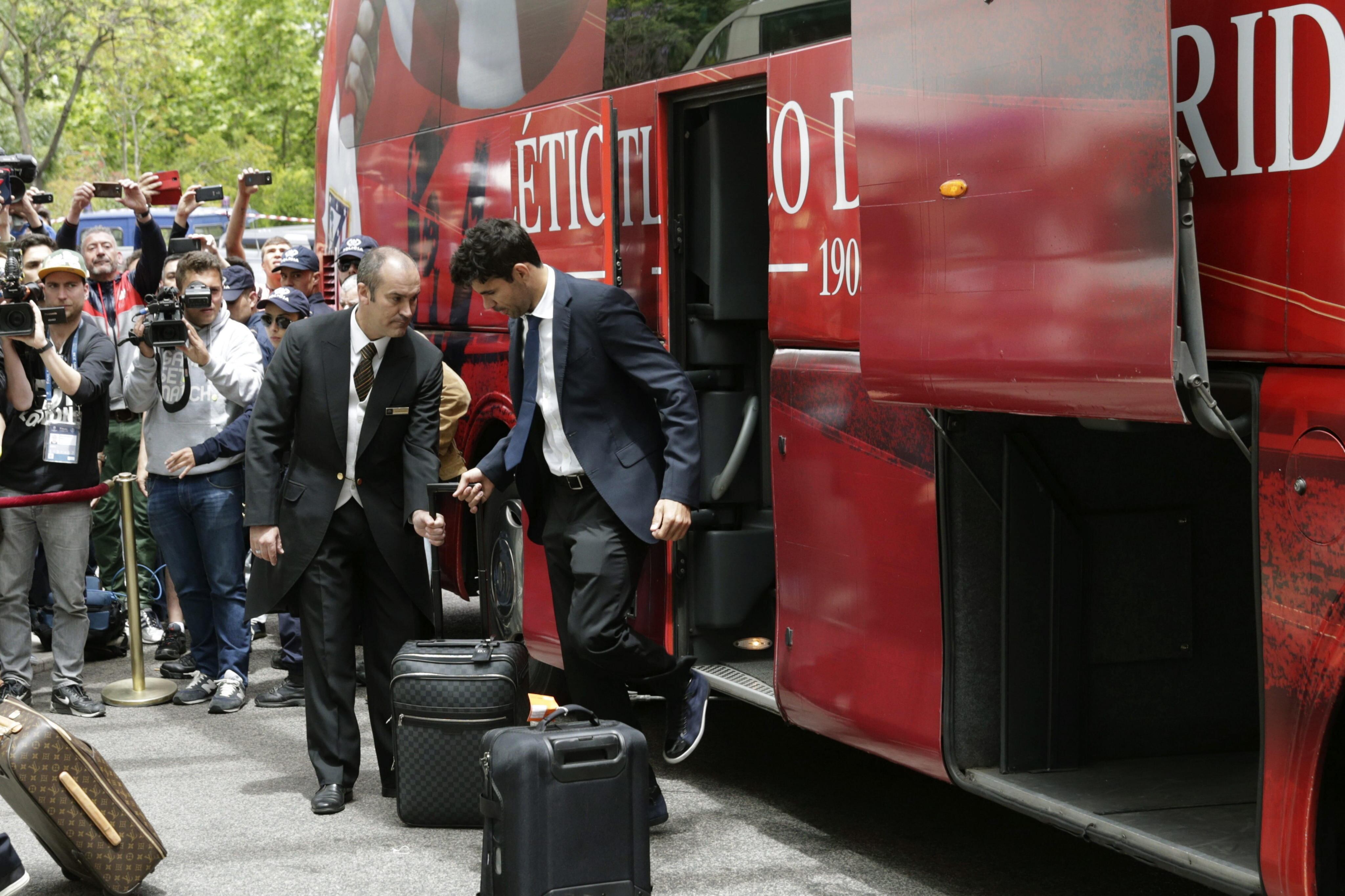Costa, que es duda para la final por problemas físicos, desembarcó del autobús sonriente, mientras que sus colegas el turco Arda Turan (también en duda) y el español David Villa enfilaron al hotel concentrados con auriculares.