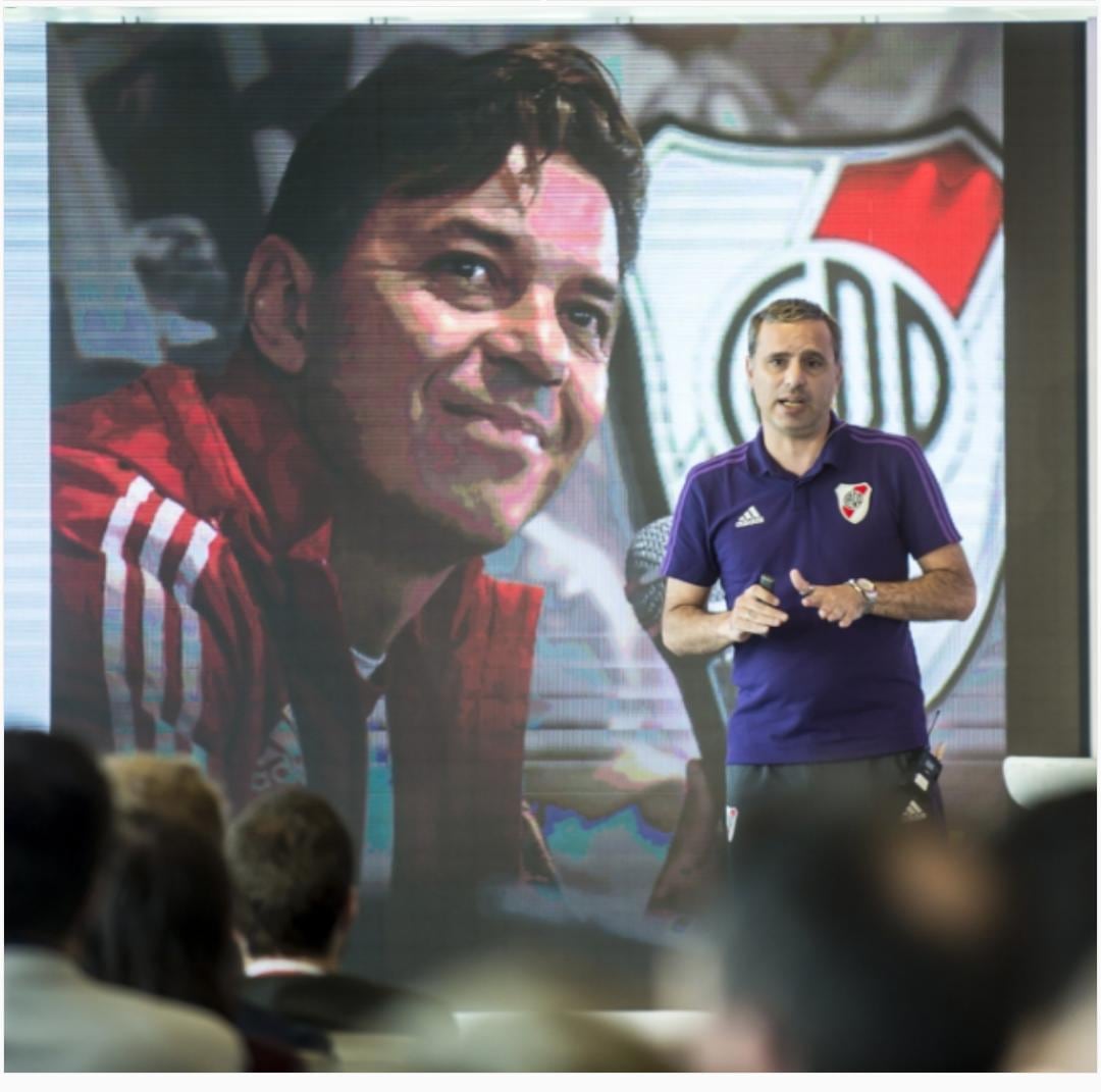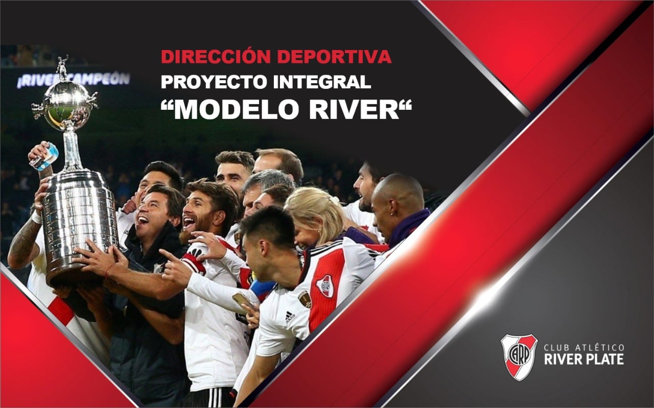 Por eso hablamos de un modelo River, que es proyecto integral, tenemos acordado con todo el cuerpo técnico profesional y el entrenador físico, técnico, médico, todos los que forman parte del cuerpo técnico profesional, son los que coordinan el proceso formativo, todos van en la misma línea, tenemos integración de cada una de las áreas funcionando exactamente de la misma manera de la primer categoría hasta la categoría 16. Todas las áreas, desde la idea de juego hasta la médica o nutrición, todas están dirigidas y coordinadas por quienes están a cargo de la primera división, entonces eso nos facilita que todo el club esté absolutamente alineado a un modelo, esto es un mérito de la directiva y del entrenador del equipo principal. El entrenador no solo es el más ganador en la historia del club, sino también permite que este proyecto transite con tranquilidad.