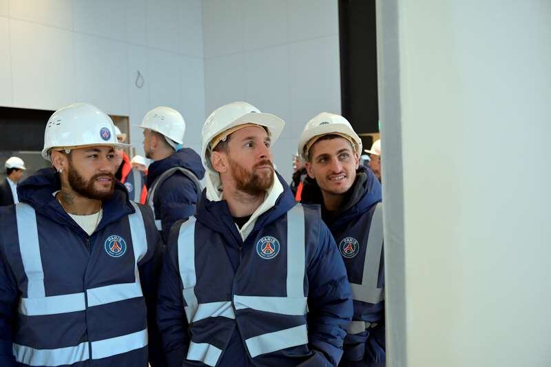 Por una medida de seguridad, todos los jugadores del equipo deben lucir una vestimenta adecuada para una obra en construcción. El presidente y director general del Paris Saint-Germain, Nasser Al-Khelaïfi, presentó a los deportistas y al cuerpo técnico las instalaciones de lo que será el nuevo centro de entrenamiento del club.
