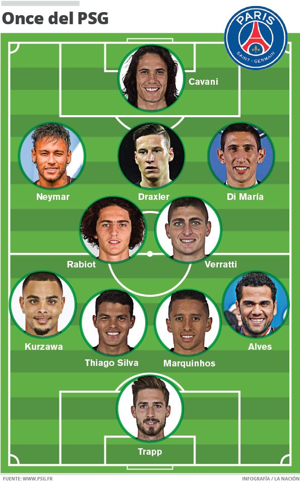 El club tiene una columna vertebral conformada por el portero Kevin Trapp; en la defensa central, al brasileño Thiago Silva; en la lateral derecha al recién llegado Dani Alves. En el medio campo cuenta con el italiano Marco Verrati y al alemán Julian Draxler. Además, en ofensiva aparecen al argentino Ángel Di María, Neymar y el uruguayo Edinson Cavani como punta.