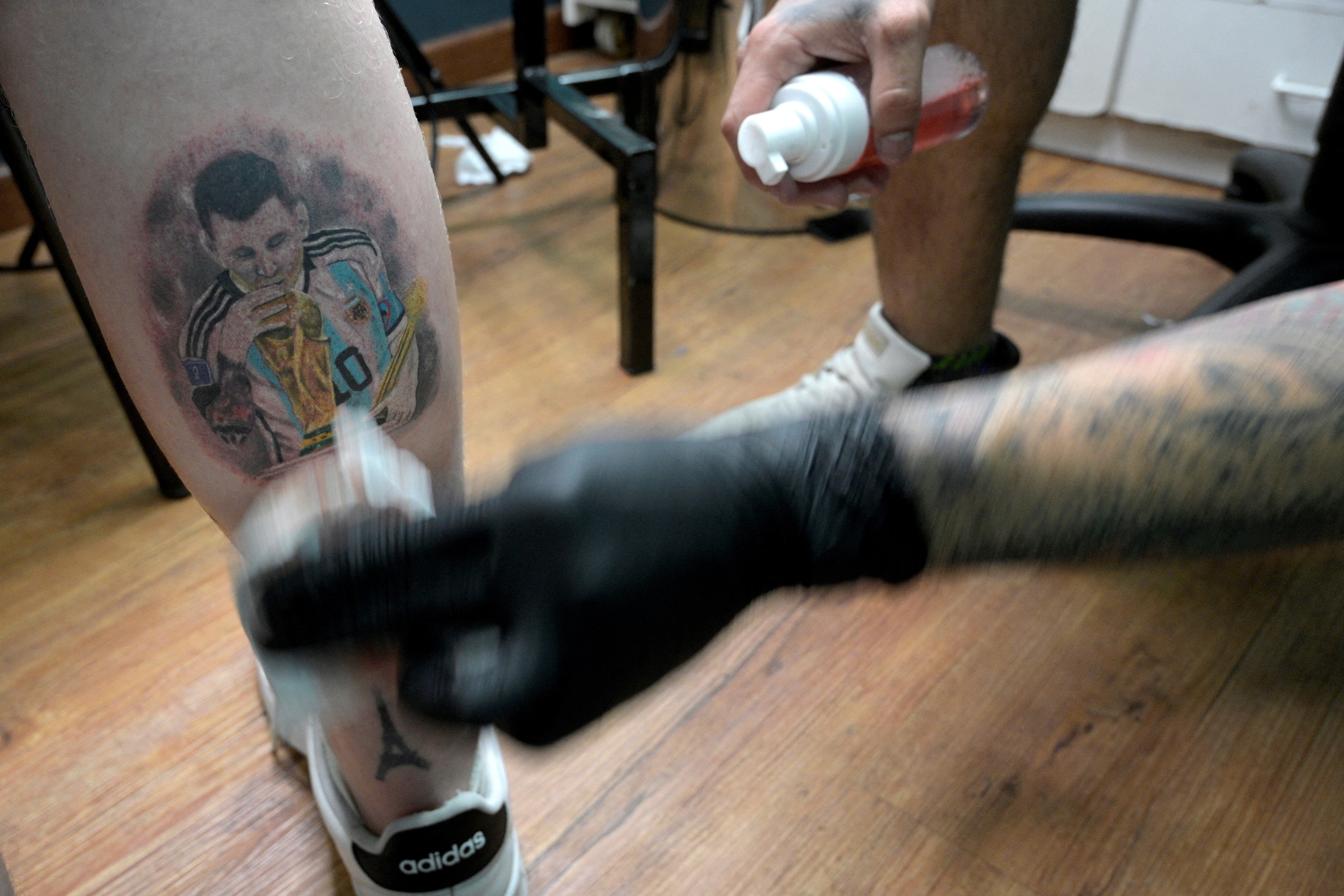 Buenos Aires. Los tatuadores redoblan el trabajo en Buenos Aires. Algunos fanáticos cambian las tradicionales serpientes o calaveras por la cara del astro Lionel Messi o por el trofeo de la Copa del Mundo levantada por Argentina en Catar. La fiebre mundialista deja su marca en la piel.