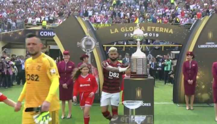 Desde antes del pitazo inicial del juego, Gabigol fue figura. El atacante no solo miró la copa cuando ingresó a la cancha, sino que la tocó, lo que podía presagiar que una vez más caería la maldición sobre quien le pone una mano encima al trofeo. Es decir, no poder levantar el cetro de campeón, pero en esta ocasión se rompió el mito.