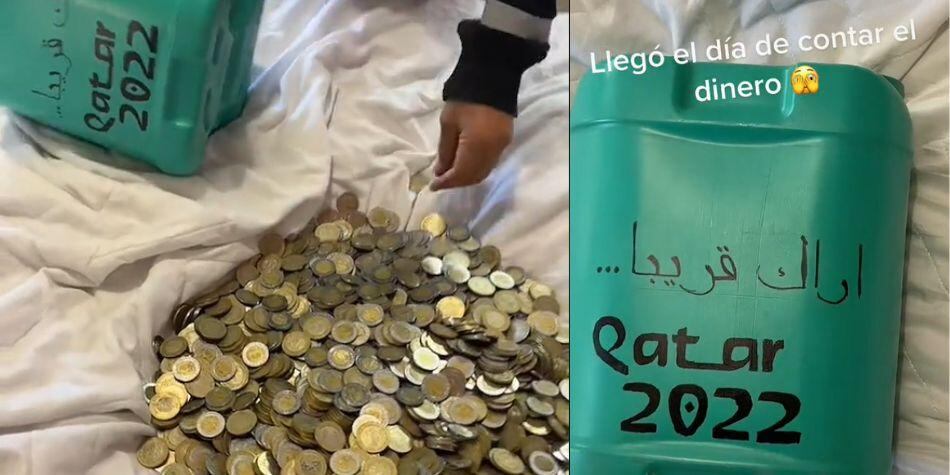 A menos de 10 días de que empiece a rodar el balón en el Mundial de Catar, el próximo 20 de noviembre, se hizo viral un video de TikTok en el que un joven vacía todo un galón repleto de monedas, que según él, ahorró durante dos años con el fin de cumplir su sueño de asistir por primera vez a un mundial de fútbol.