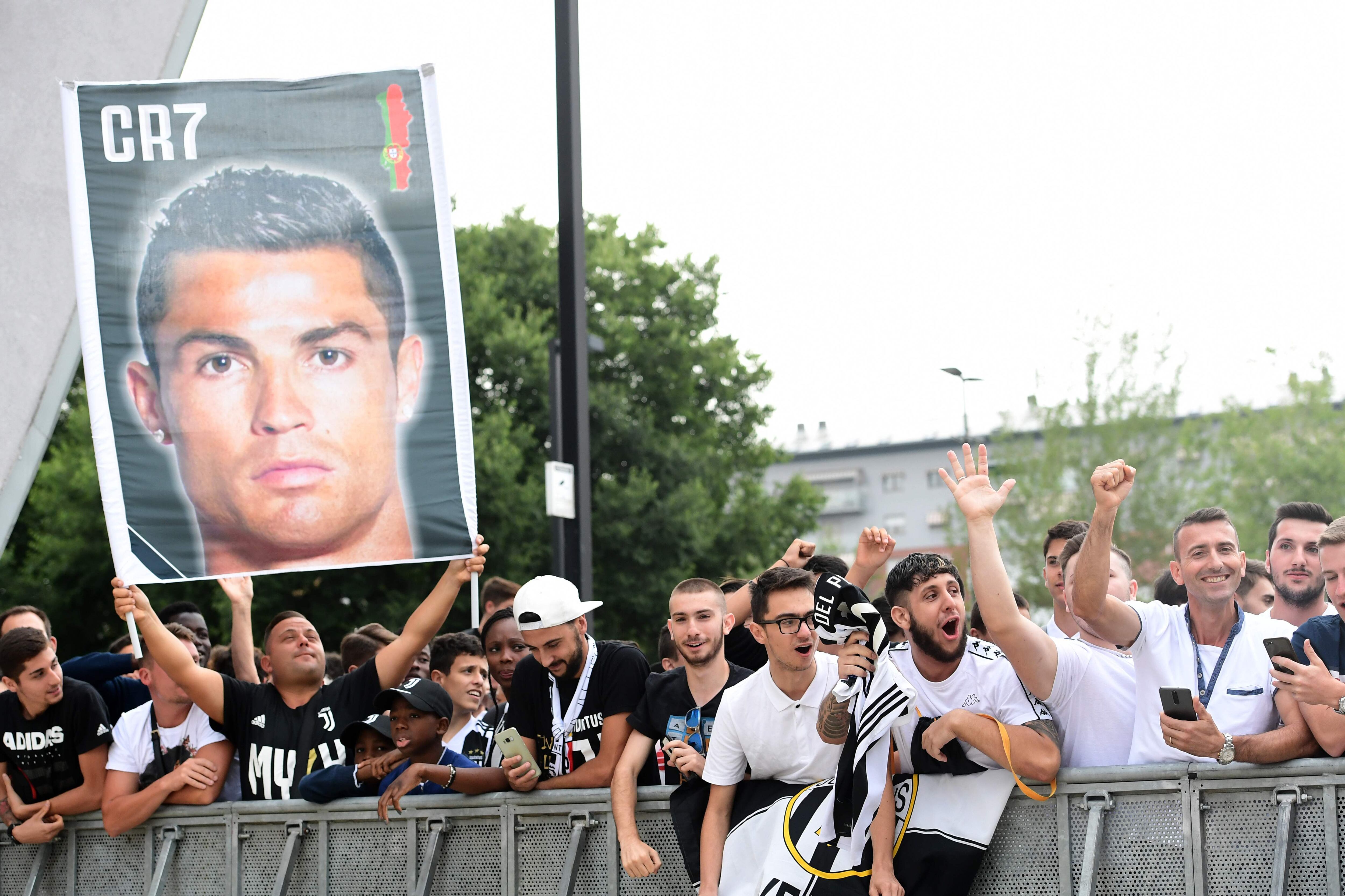 Centenares de hinchas entusiastas aclamaban ya este lunes a Cristiano Ronaldo a su llegada para el reconocimiento médico en Turín, en un día en el que la superestrella portuguesa firma su contrato con la Juventus antes de ser presentado.