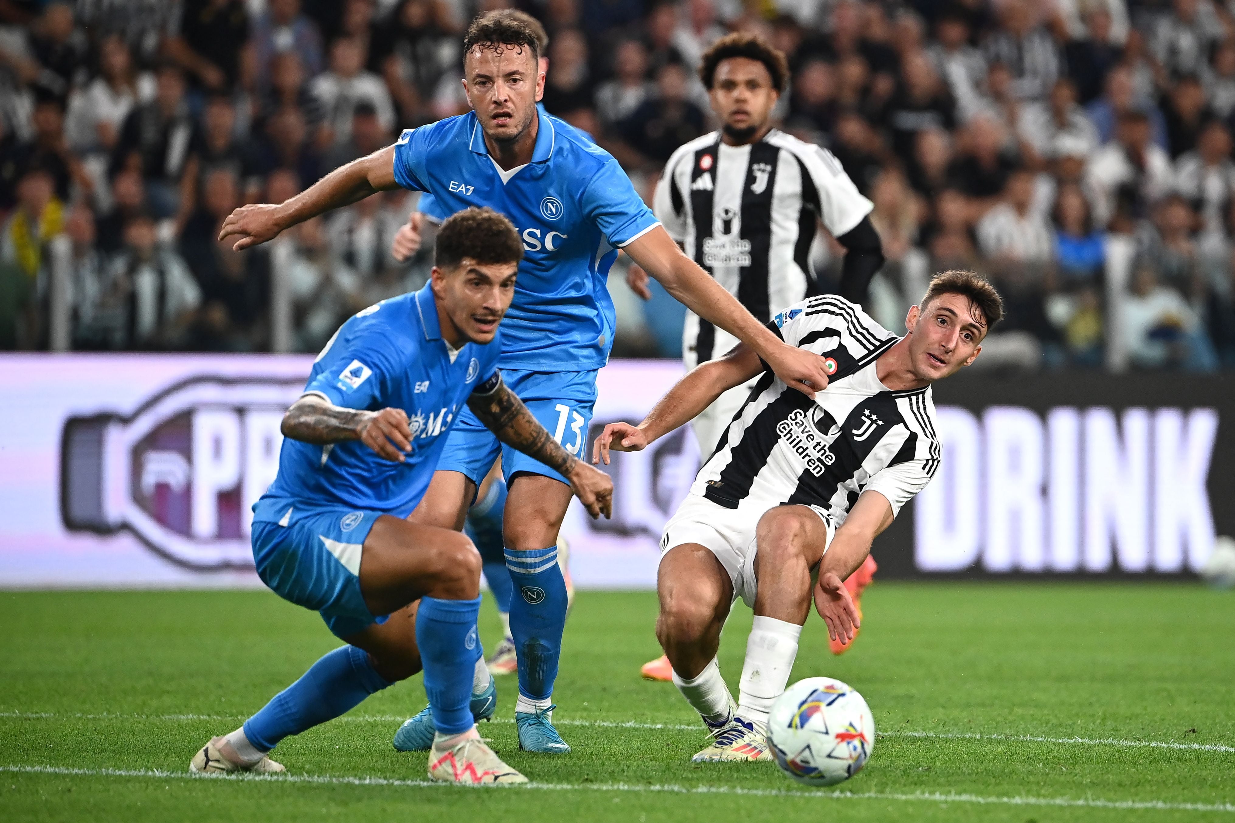 Fue el Nápoles, ahora entrenado por el antiguo jugador (1991-2004) y DT juventino (2011-2014) Antonio Conte, el que creó las mejores ocasiones, por medio de Romelu Lukaku (45+1′) cuyo remate a bocajarro fue desviado in extremis por Michele Di Gregorio, y un disparo de Matteo Politano, justo por encima del larguero turinés (55′).