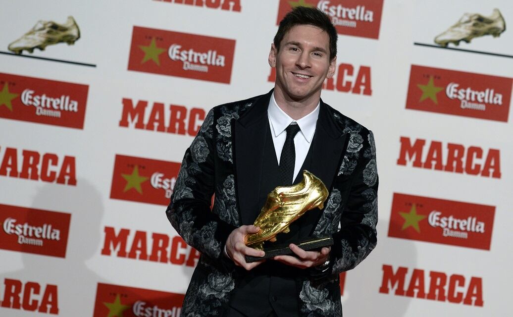 El jugador de Rosario, Argentina, se convertió hoy en el primer futbolista en lograr tres Botas de Oro. Esta última por los 46 goles que anotó en 32 partidos de Liga la pasada campaña.