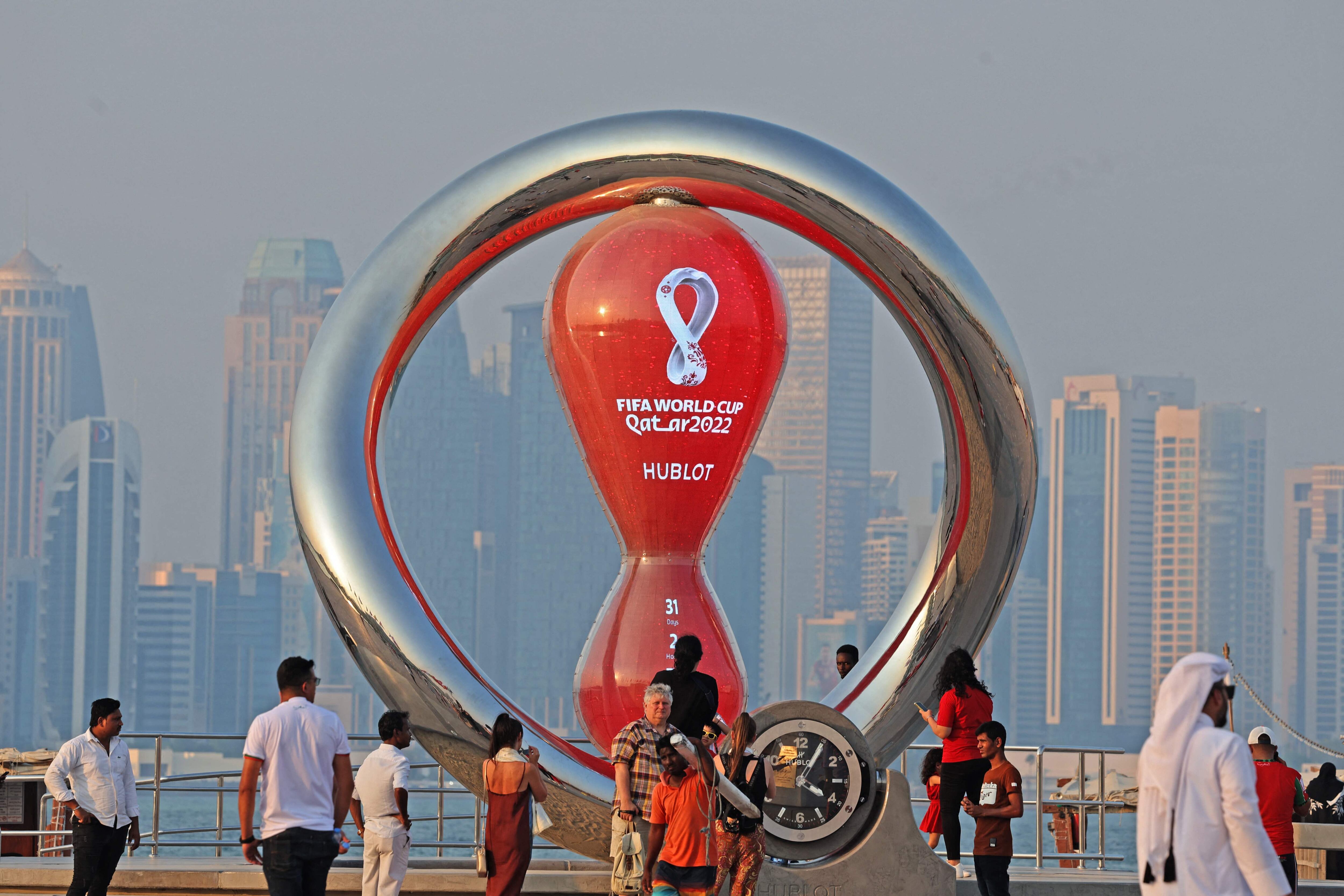 El reloj de la cuenta atrás antes del Mundial está situado en la corniche de Doha, un paseo marítimo no demasiado alejado de las principales ‘fan-zones’ y que ofrece una vista impresionante sobre las torres del distrito financiero de West Bay, decorados con pósteres gigantes de estrellas de los 32 equipos clasificados para el torneo.