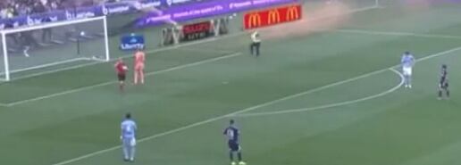 Otra de ellas aterrizó a escasos metros de la portería defendida por Tom Glover, arquero del Melbourne City, que la devolvió hacia la grada en la que se encontraban aficionados del Melbourne Victory. La respuesta de éstos fue invadir el campo en dirección a Glover, uno de ellos lanzando un cubo de metal que impactó violentamente al arquero en el rostro, hiriéndolo.