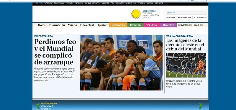 Por otro lado, los medios de comunicación uruguayos destacaron que las chances de los charrúas de avanzar a los octavos de final fueron hipotecadas tras la derrota contra los costarricenses.