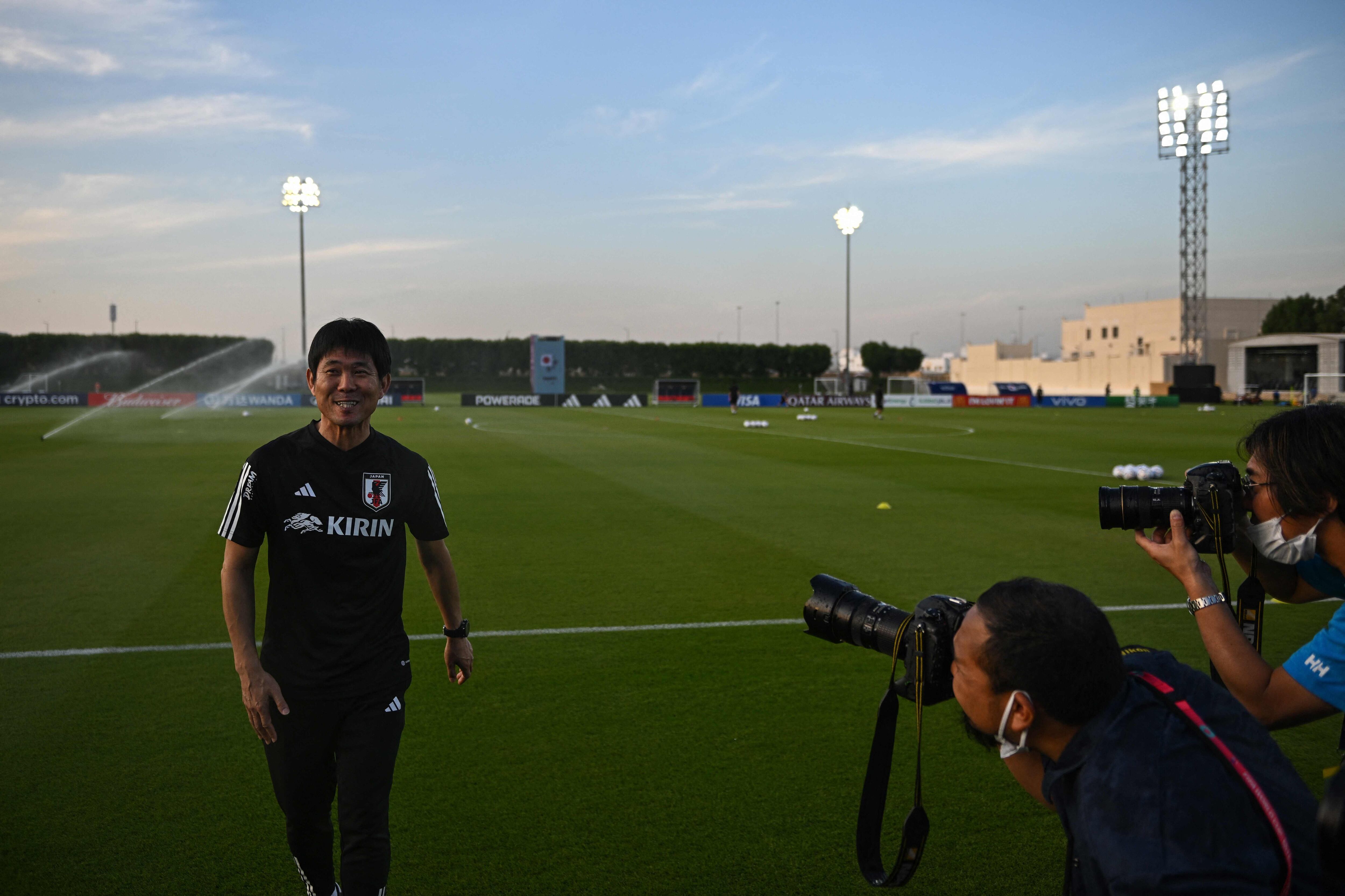 Un día después de la sensacional victoria 2 por 1 de Japón sobre Alemania, Hajime Moriyasu, técnico japonés dirigió a su equipo en el entrenamiento del jueves y recibió un inesperado “duchazo” cuando el sistema de irrigación de la cancha lo mojó mientras hablaba con los periodistas.