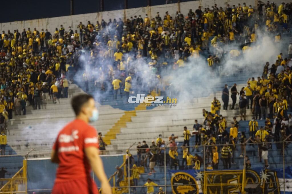 De acuerdo con información del diario deportivo Diez, una pelea entre barras, una hora antes del primer partido entre albos y el España, provocó la balacera en las inmediaciones del estadio sampedrano, que las autoridades no pudieron controlar y decenas de personas corrían despavoridas buscando salvaguardarse.
