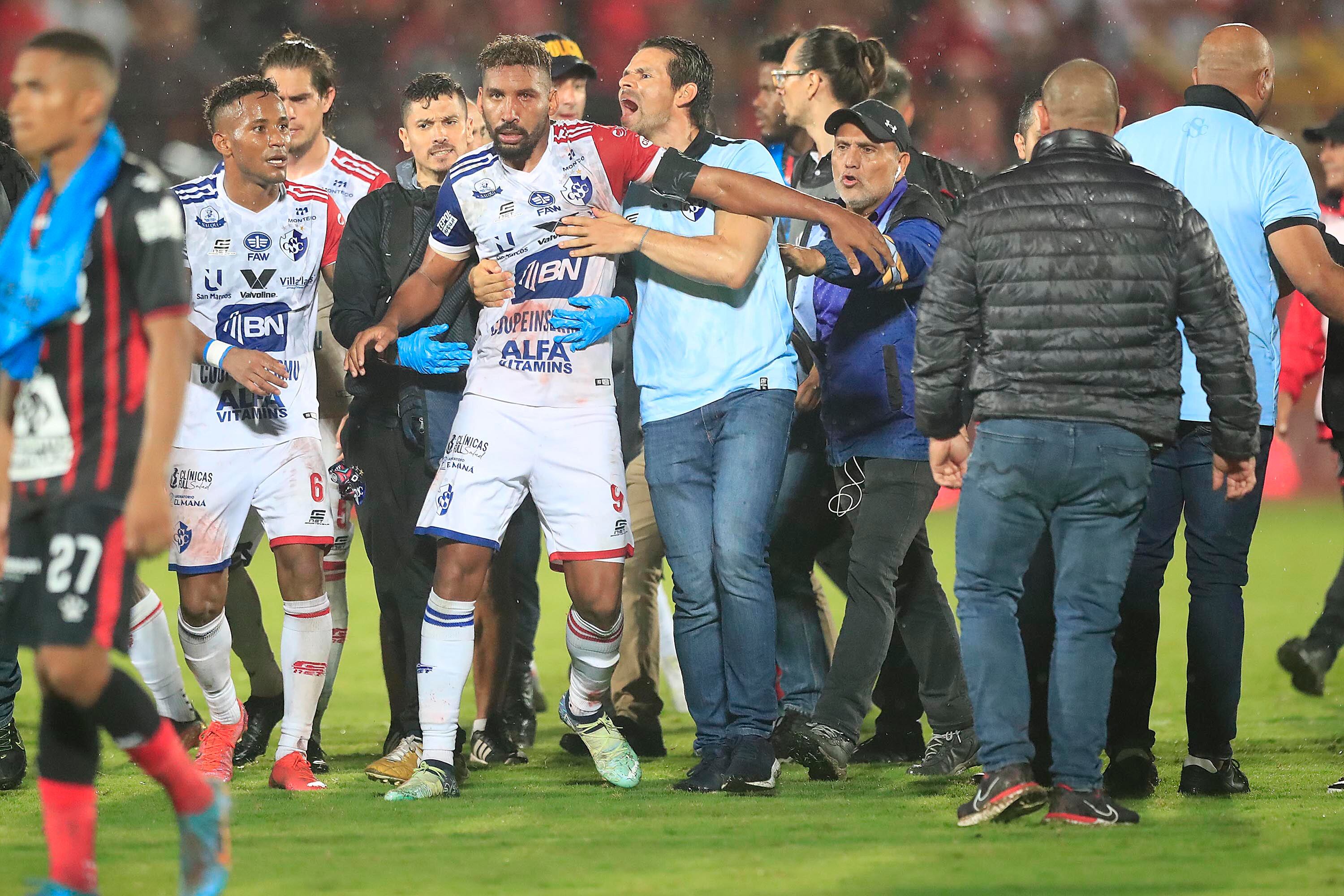 Cuando estaba lo suficientemente cerca, el aficionado se le lanzó y en apariencia golpeó al jugador en la cara con su antebrazo. La seguridad privada y la Fuerza Pública intervinieron para evitar que la situación escalara más y lo acompañaron al jugador hasta el vestuario para seguir la celebración. La persona que invadió la cancha fue detenida por la Fuerza Pública.