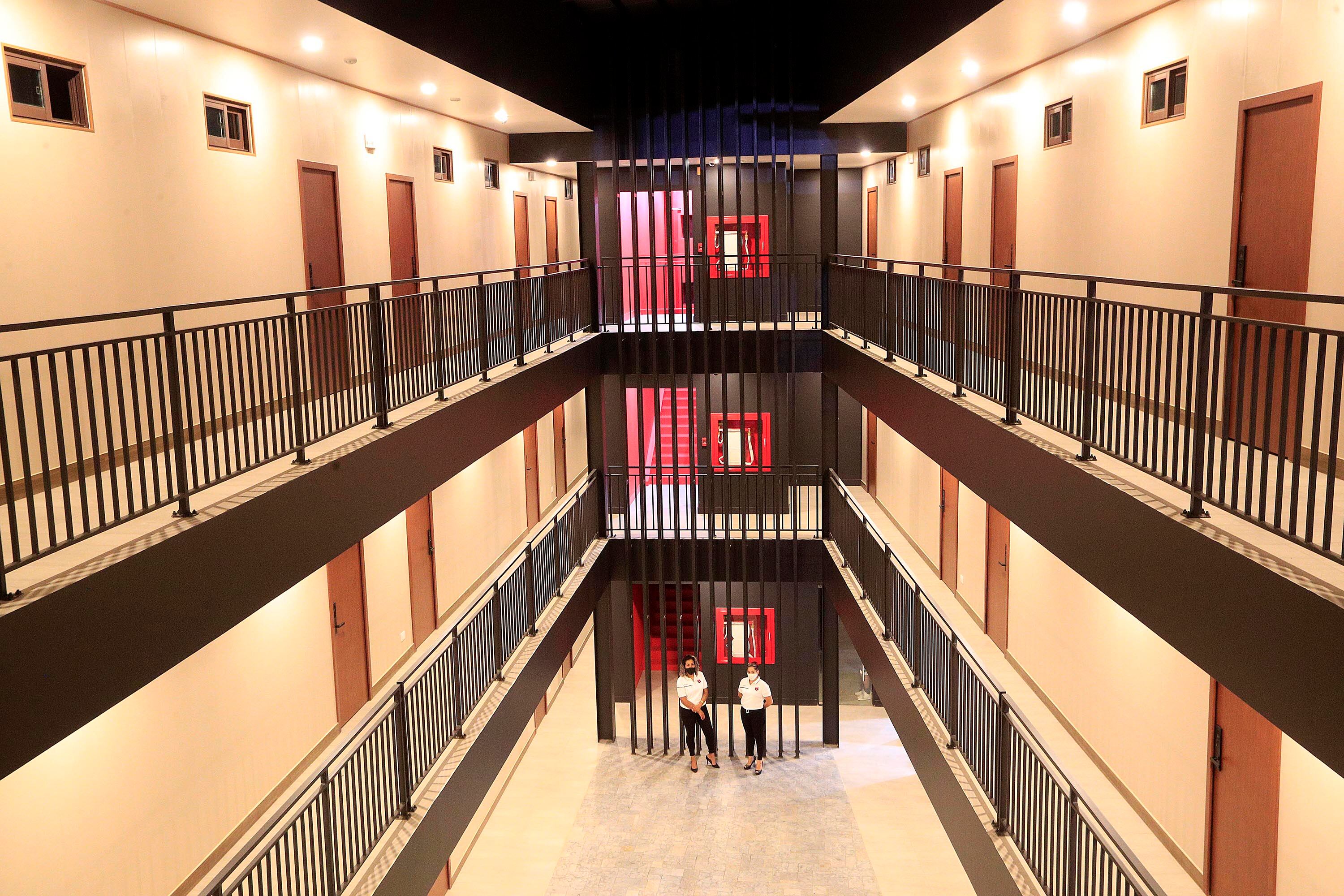 En total, son 50 habitaciones dobles, cada una con baño propio. Para el acceso cuenta tanto con escaleras como con ascensor.