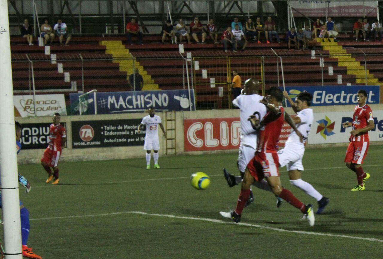 Los blanquiazules abombaron las redes en el minuto 25. Ricardo Blanco recuperó, se apoyó con Néstor Monge, este abrió la cancha de nuevo con Blanco, quien envió un centro preciso para que apareciera Johnny Woodly en el primer palo y enviara el balón al fondo. Una alegría que ilusionó y puso a soñar a los visitantes.