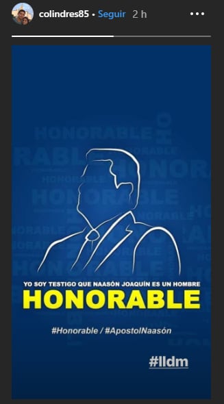 "Yo soy testigo que Naasón Joaquín es un hombre honorable", cita la imagen que colocó el futbolista en una historia en su red social.