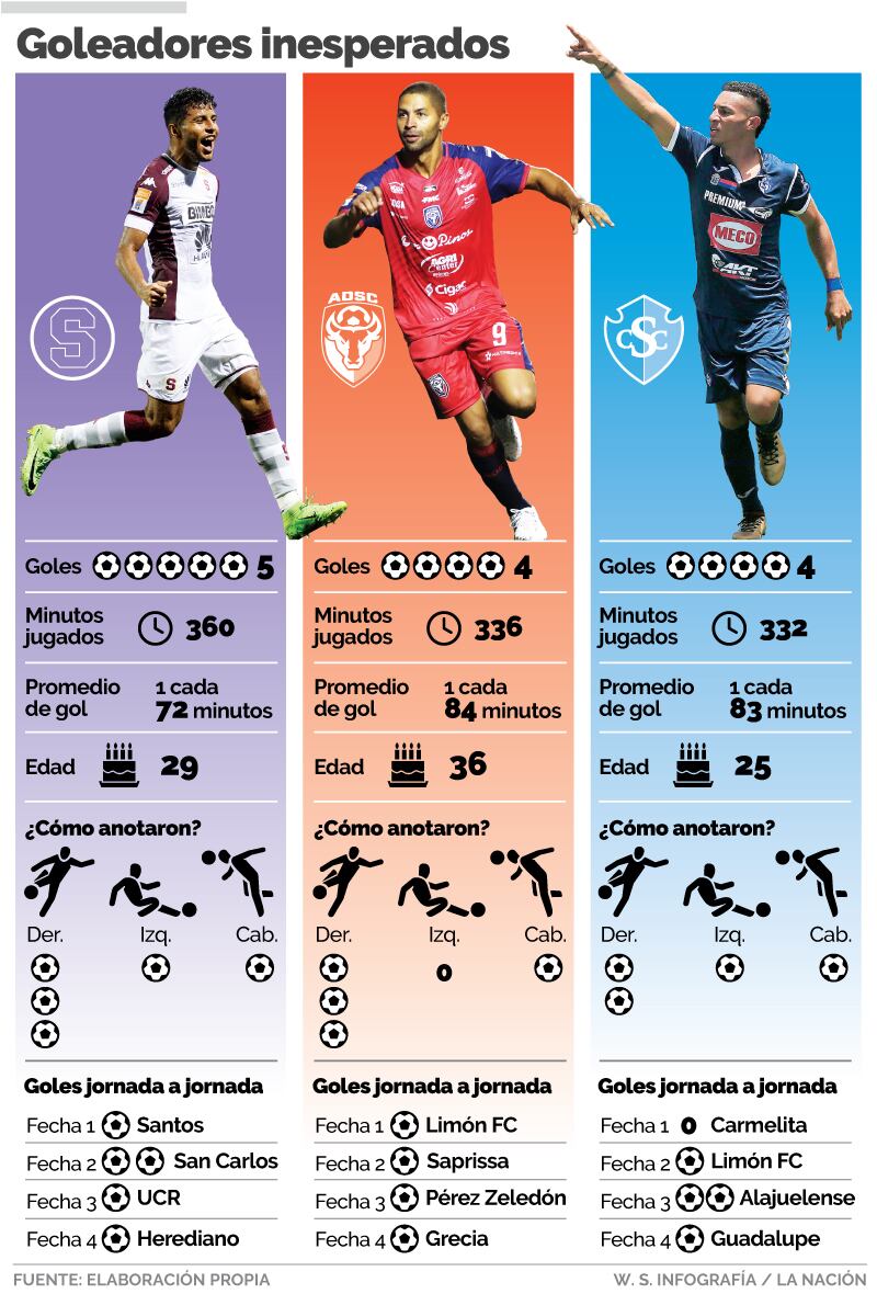 Venegas, el más señalado en el Mundial de Rusia 2018, registra cinco celebraciones; Saborío, un veterano de 36 años, tiene cuatro; y Pemberton volvió del retiro tras seis meses de ausencia, y suma cuatro. Ellos comandan la tabla de goleadores en apenas cuatro jornadas del Apertura y sorprenden a propios y extraños con su presencia en las redes. VEA: Infográfico.