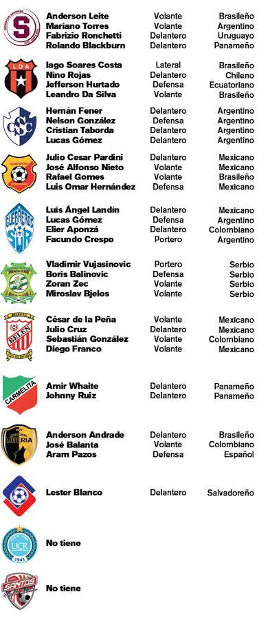 Saprissa conservó a tres de sus fichas extranjeras: Fabrizio Ronchetti, Rolando Blackburn y Mariano Torres; Pérez Zeledón se dejó a Lucas Meza y a Luis Ángel Landín, en tanto, Cartaginés solo retuvo al argentino Hernán Fener y Carmelita al panameño Amir Whaite.