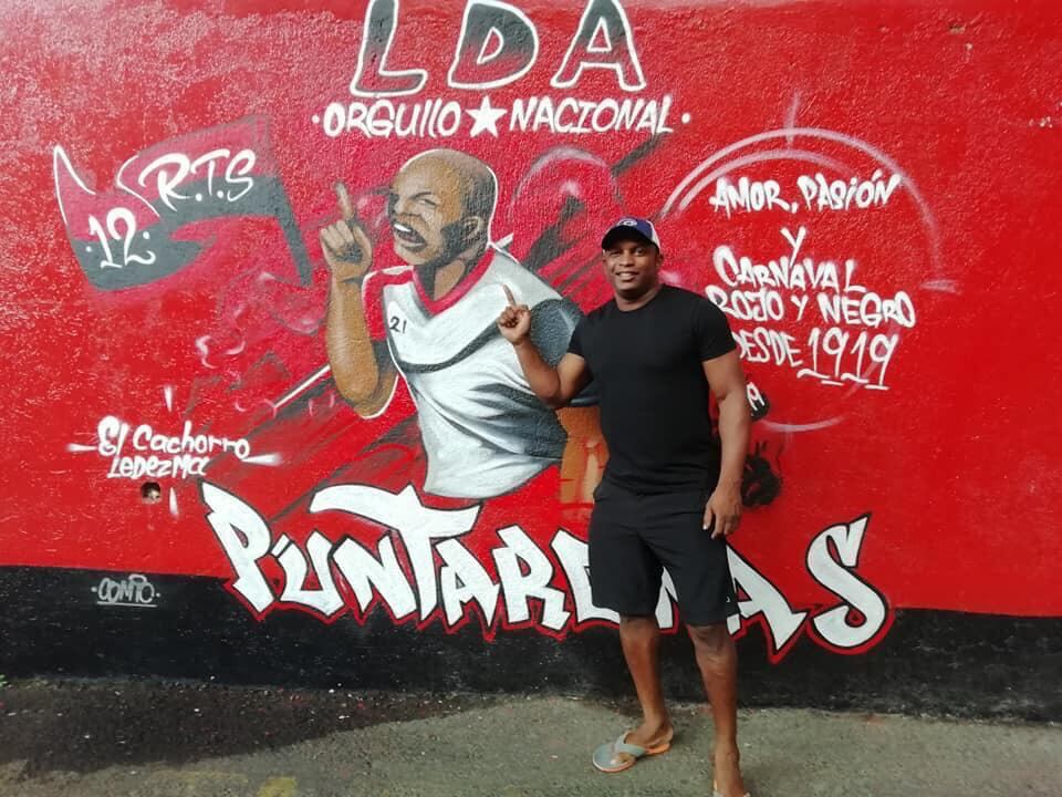 Vestía de negro, con pantaloneta de surf y sandalias. Parecía que estaba en la playa, pero en realidad se encontraba en el estadio donde enloqueció a miles de seguidores rojinegros muchos años atrás, quienes aún lo recuerdan y le demuestran su cariño, pese a que jugó con Saprissa y con el Herediano.