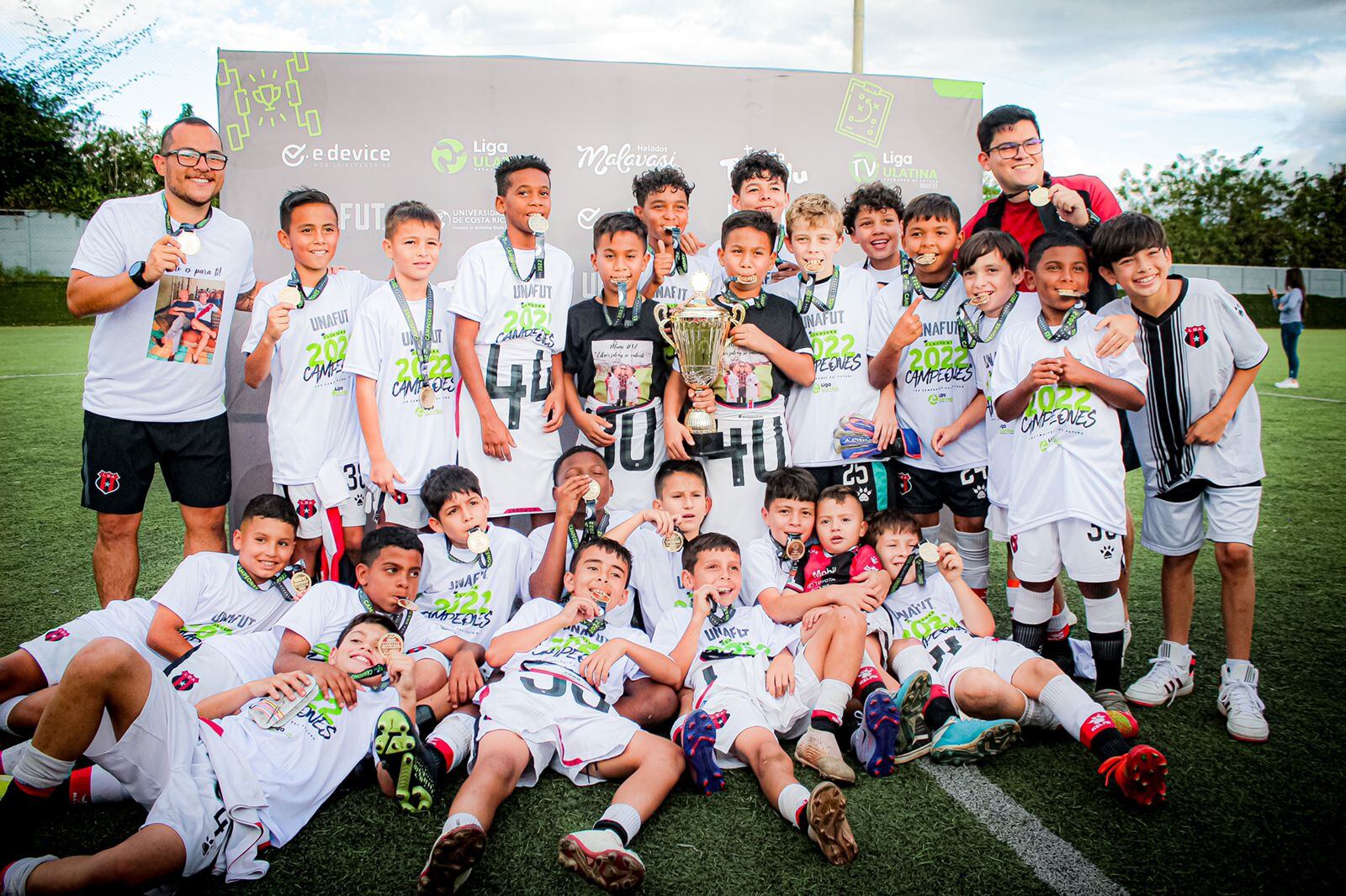 Con un sentido festejo con los hijos de doña Jenny levantando el trofeo, nuestra categoría U-11 gritó campeón hasta el cielo luego de vencer a Herediano. ❤️🙏🏻🖤 pic.twitter.com/VF3xLzVtgO