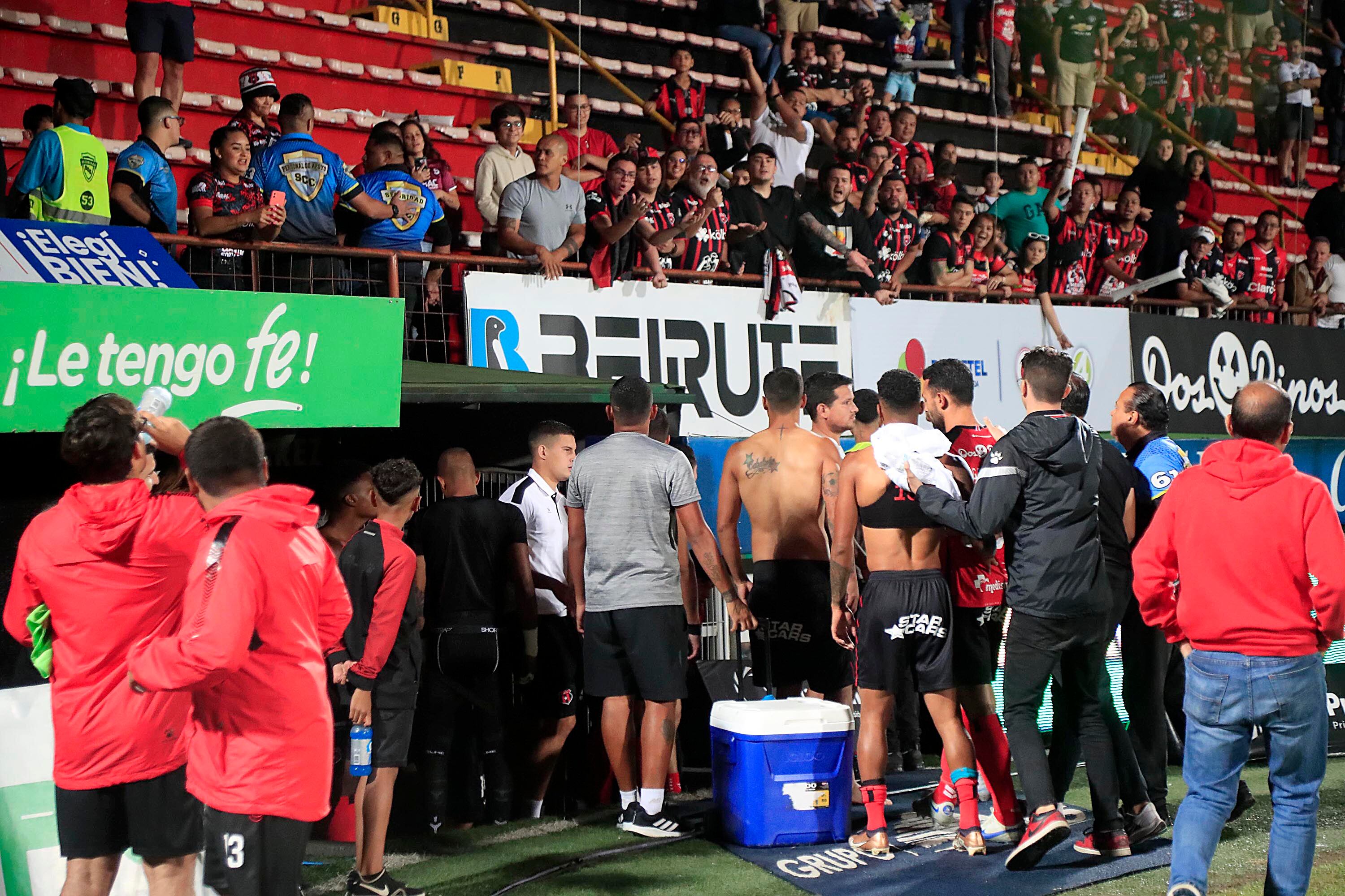 Mientras la seguridad privada lo sacaba del campo, otros manudos más bien le aplaudían, porque aunque tampoco estaba bien su actuar, representaba el sentir y la frustración de muchos.
