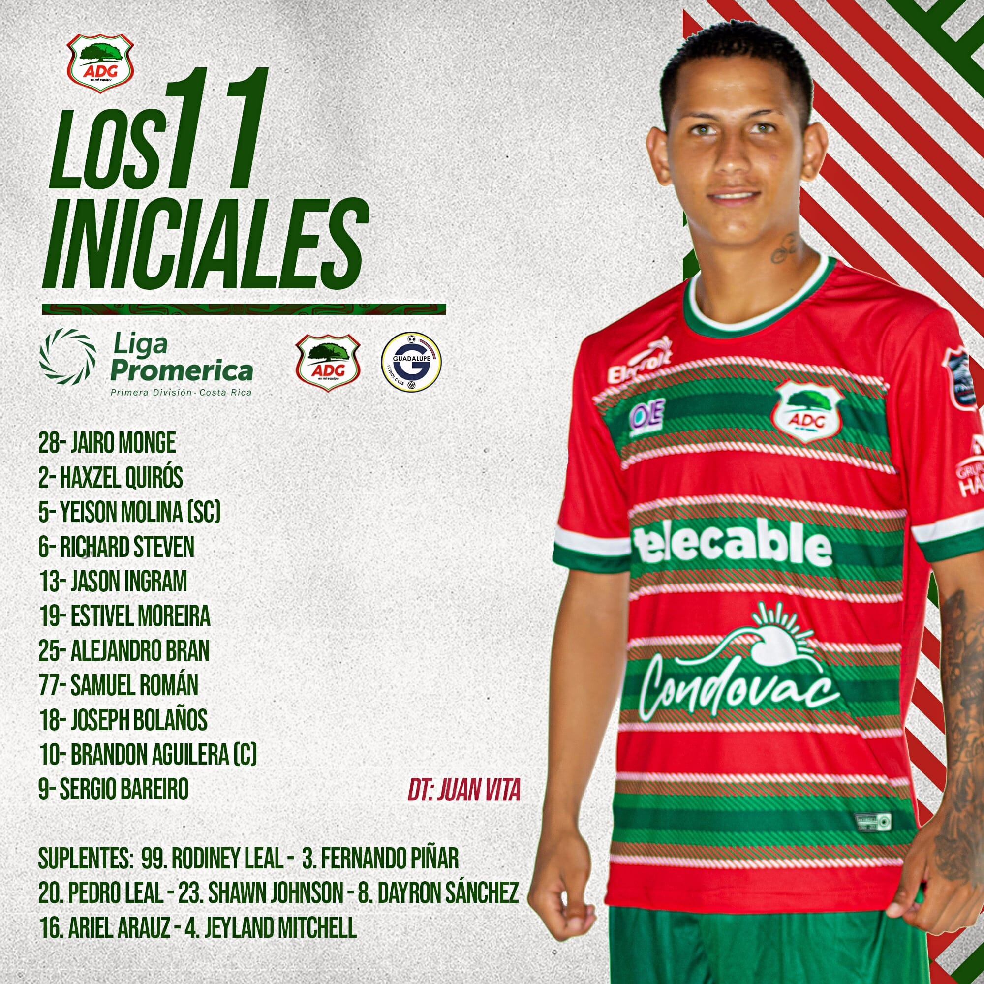 Guadalupe: Caleb Arroyo, Néstor Monge, Josué Meneses, Darío Delgado, Junior Delgado, Jorkaeff Azofeifa (Andrés Gómez al 73), Creichel Pérez (René Miranda al 73), Fabrizio Ramírez (Jonathan Martínez al 73), Eduardo Juárez, Jossimar Pemberton (Royner Rojas al 39) y Julen Cordero (Aarón Murillo al 60).