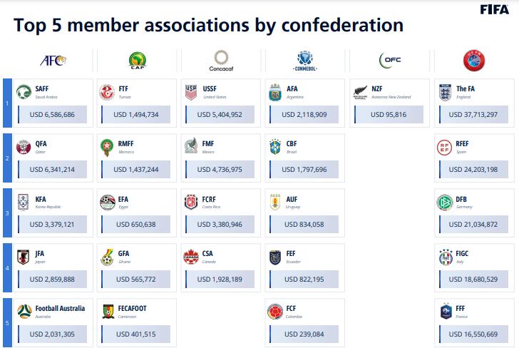 FIFA distribuyó un total de $209 millones por la liberación para el Mundial de 837 futbolistas.