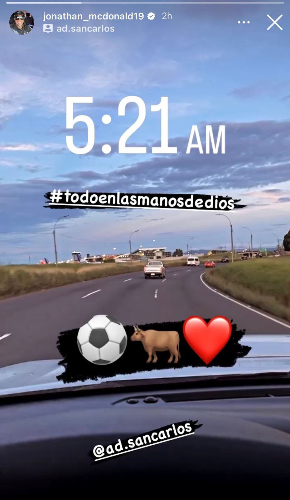 El atacante Jonathan McDonald firmó este lunes su contrato con la Asociación Deportiva San Carlos (ADSC), así lo confirmó el jugador mediante sus redes sociales, donde publicó una historia referente a la que será su nueva casa. También el club lo hizo oficial.