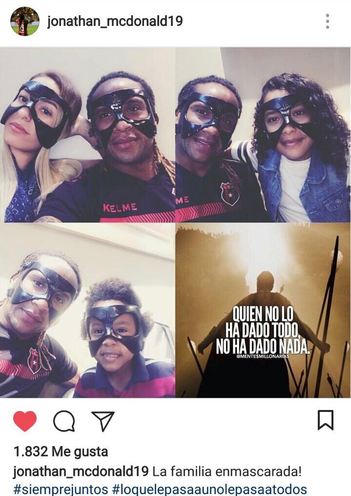 El futbolista publicó en sus cuenta de Instagram una imagen en la que aparece con su esposa Andrea y sus hijos Emelyn y Jayden, enmascarados los cuatro.