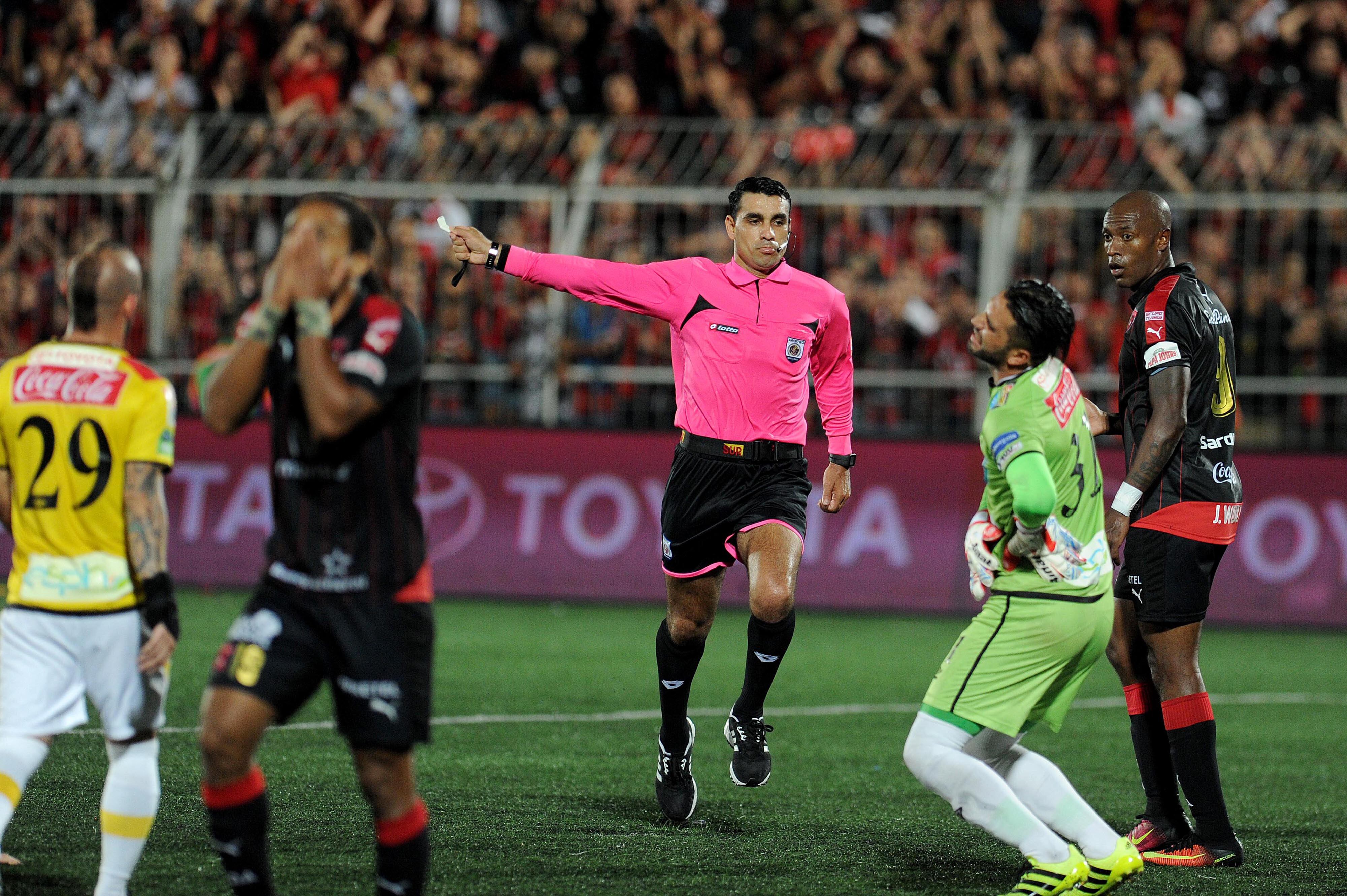 En los dos partidos que le ha pitado a Saprissa, el debutante en clásicos le mostró tres tarjetas amarillas a jugadores morados. En la misma cantidad de duelos, a los manudos les enseñó seis amarillas y una roja.