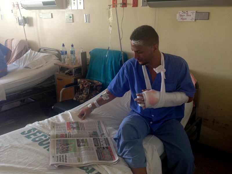 La verdad es bastante grave, está muy comprometida la mano. Están expuestos algunos ligamentos, tendones más la fractura expuesta. La verdad es bastante complicado, temo que mi carrera se trunque pero me amparo en lo que los doctores y en lo que me han dicho sobre la cirugía reconstructiva, que son muy exitosas. Me han dicho que esté tranquilo, que voy a recuperar la movilidad de los dedos, la voy a recuperar.