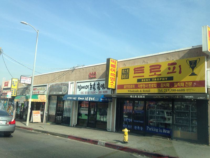 Es tan grande la cantidad de surcoreanos en esta ciudad, que existe un barrio llamado Korean Town, donde hay muchos establecimientos comerciales todos con rótulo de su idioma natal.