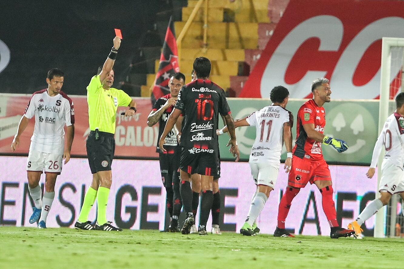 ¿Qué pitó Bejarano? Muestra la tarjeta amarilla al saprissista (al que ya había amonestado anteriormente en otra acción) y lo expulsa por doble amonestación.