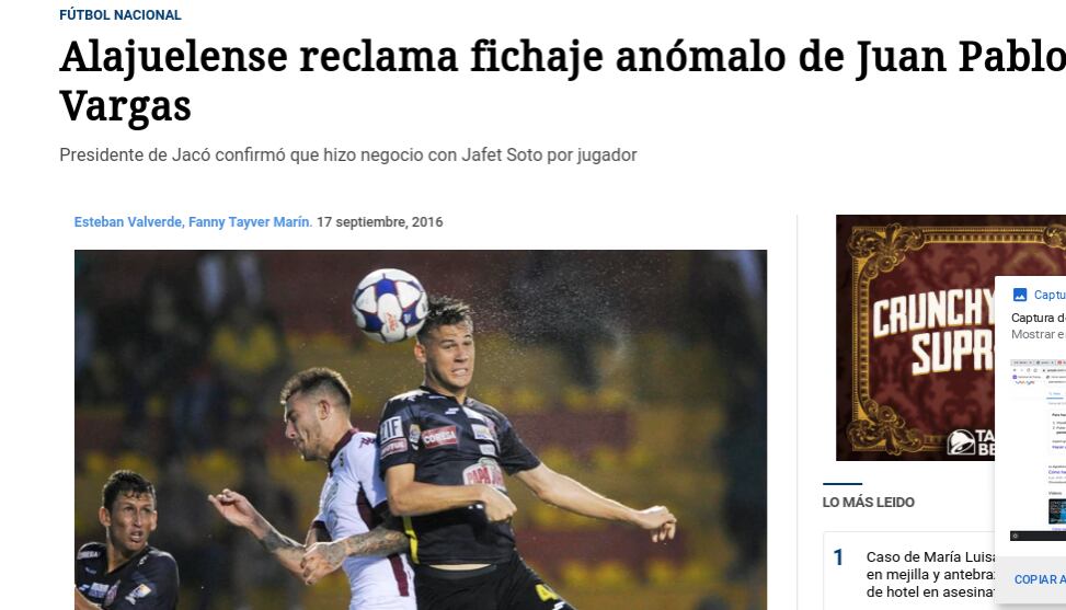 “Hay un tema complicado porque Herediano contrató al lateral Juan Pablo Vargas, lo presentaron a la prensa, aceptaron públicamente que era futbolista de ellos, pero tenemos entendido que lo inscribieron con un club de Segunda División, Jacó Rays, y ese club seguidamente lo prestó a un equipo de Primera División, Belén, y así evitaron un pago alto de derechos de formación”, dijo en aquel momento Mata.