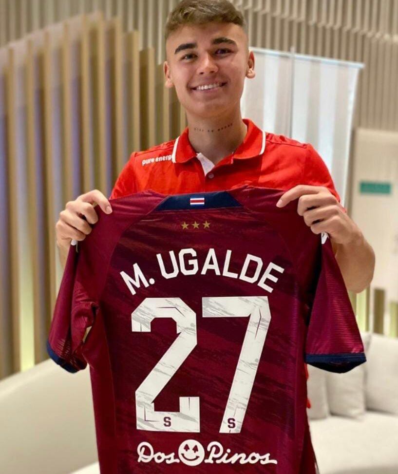 El “Saprichamaco”, como le dicen los seguidores morados a Ugalde, recibió la nueva camiseta de Saprissa, la que empezará a usar en el inicio del Torneo de Clausura en enero del 2023.