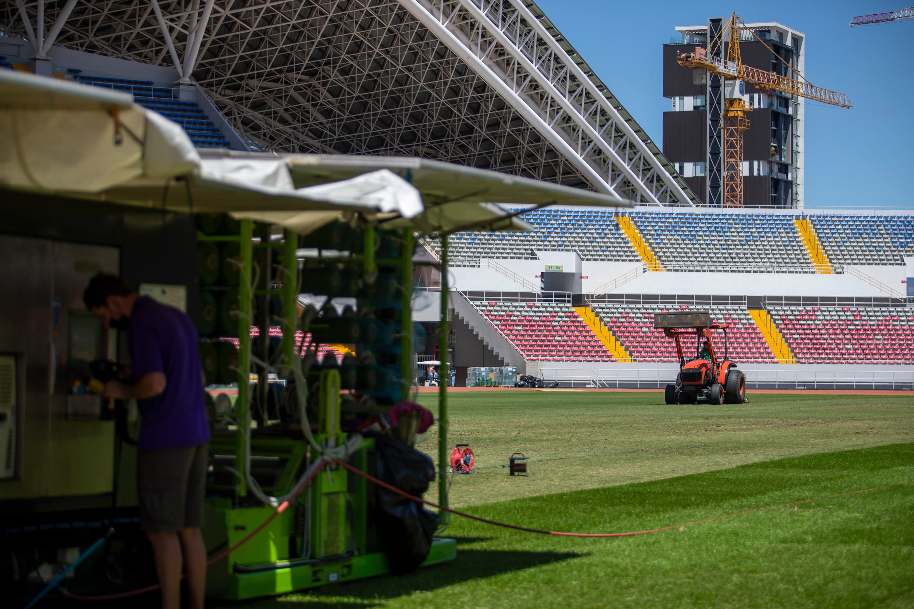 El ingeniero Óscar Arias Morera, quien está supervisando la obra en nuestro país, comentó que la gramilla híbrida del estadio Alejandro Morera Soto ya se concluyó y se espera que el viernes de esta semana finalice el cosido en el Estadio Nacional.