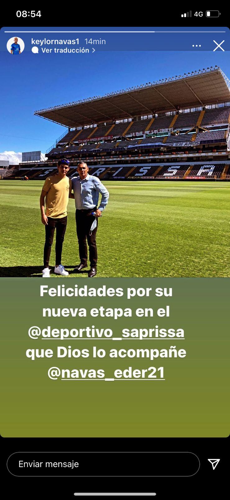 Este miércoles fue Keylor el que sorprendió al felicitar a su hermano por medio de sus redes sociales a Eder Navas, de 19 años, quien había firmado con el Saprissa. Con un “felicidades por su nueva etapa”, acompañado de un “Que Dios lo acompañe”, el guardameta despertó la curiosidad entre los aficionados.
