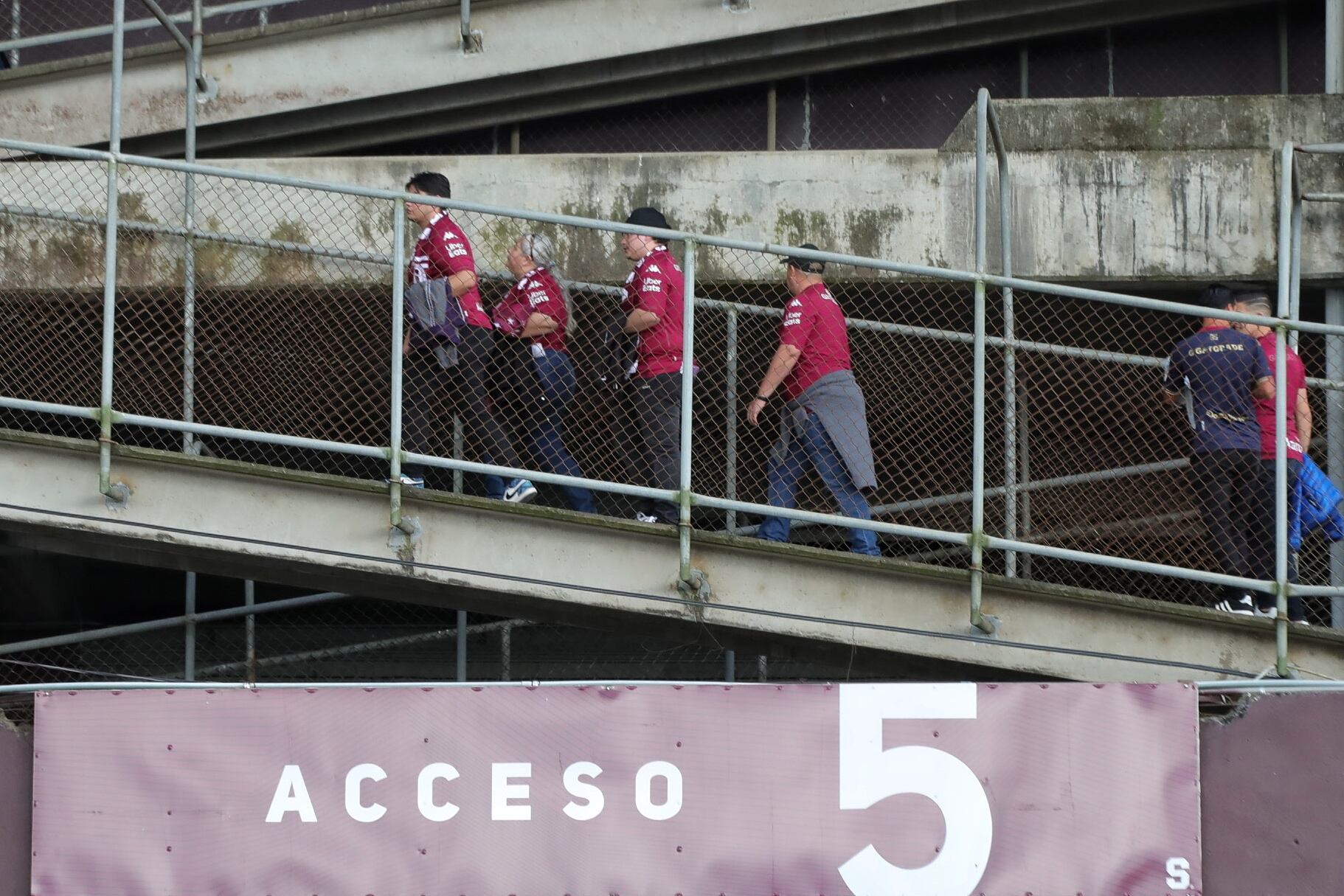 Aficionados morados y rojiamarillos no dudaron en vestirse con la camisa de su equipo. También sacaron banderas y las pitoretas le han dado un matiz distinto a este domingo desde horas de la mañana.