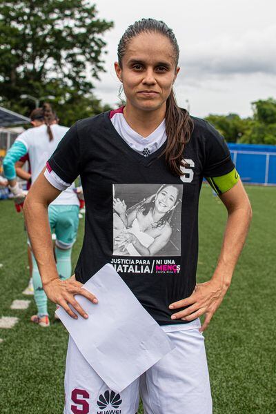 Hasta ahora han sido siete partidos haciendo lo mismo. La primera vez fue el 13 de setiembre en un compromiso ante Herediano, cuando Katherine Alvarado llevó el nombre e imagen de Natalia, amiga de su infancia, quien fue asesinada a los 28 años.