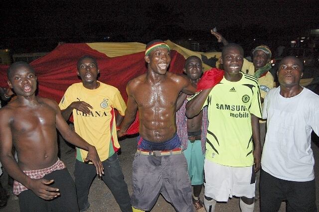 Ayer algunos hinchas se acercaron a las iglesias para agradecer a Dios por esta victoria, que hizo de Ghana el tercer equipo africano de la historia, tras Camerún en 1990 y Senegal en 2002, en alcanzar este nivel de la competición.