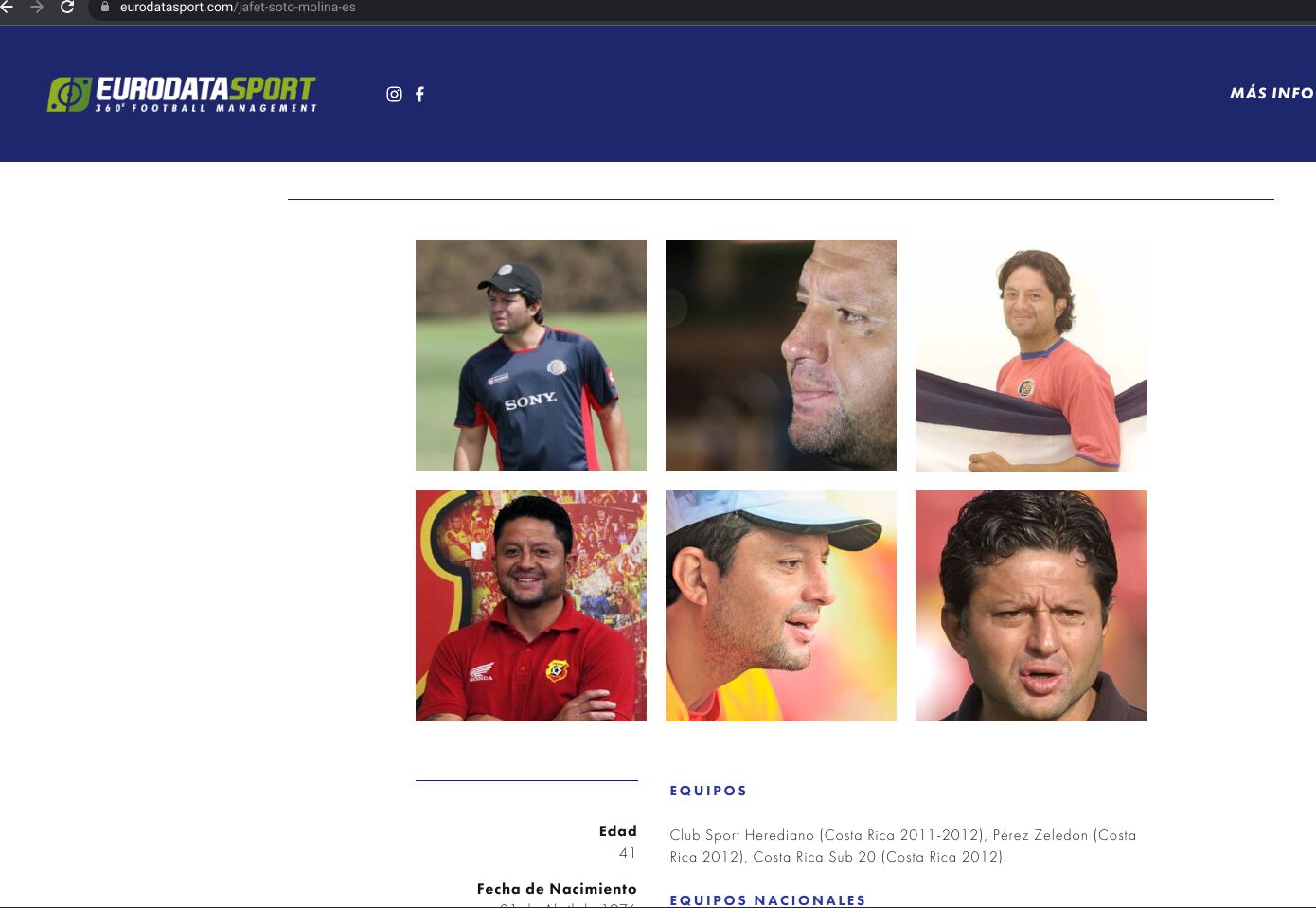 La Nación le consultó a Ricardo Pachón si Eurodata Sports representa a Jafet Soto; él asegura que no, y que la hoja de vida del tico aparece en el portal porque tiene unos años de no actualizarse.