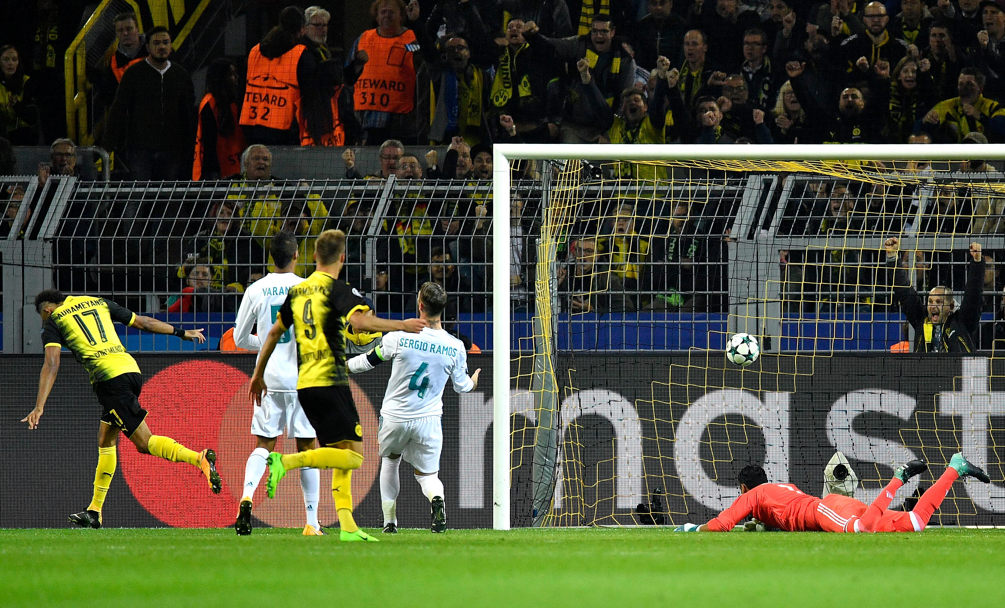No obstante, en el 53' el Borussia encontró el descuento gracias a un centro de Gonzalo Jara que habilitó a Pierre Emerick Aubameyang, el delantero le ganó la posición a Varane y venció a Keylor con un puntazo.